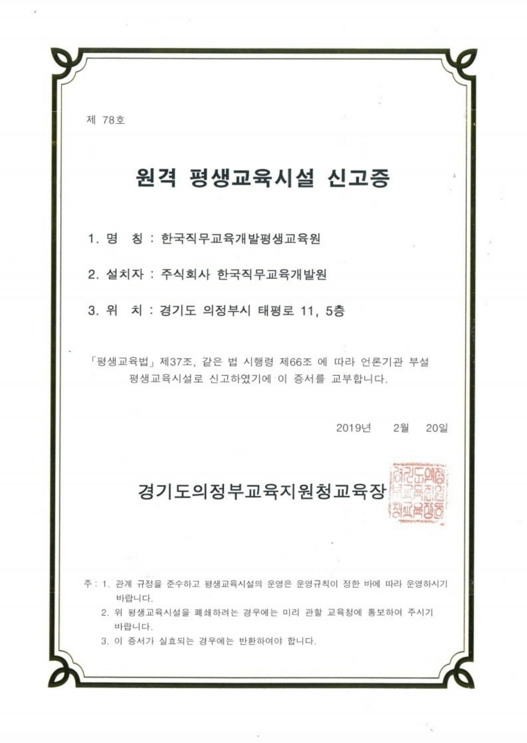 - 견적서, 한국직무교육개발원 법정의무교육 학습자 매뉴얼, 안전보건교육위탁기간 등록증, 원격 평생교육시설 신고증, 한국직무개발원 안내서, 수강신청서, 장애인인식개선교육기관지정서, 5대법정의무교육 내용..